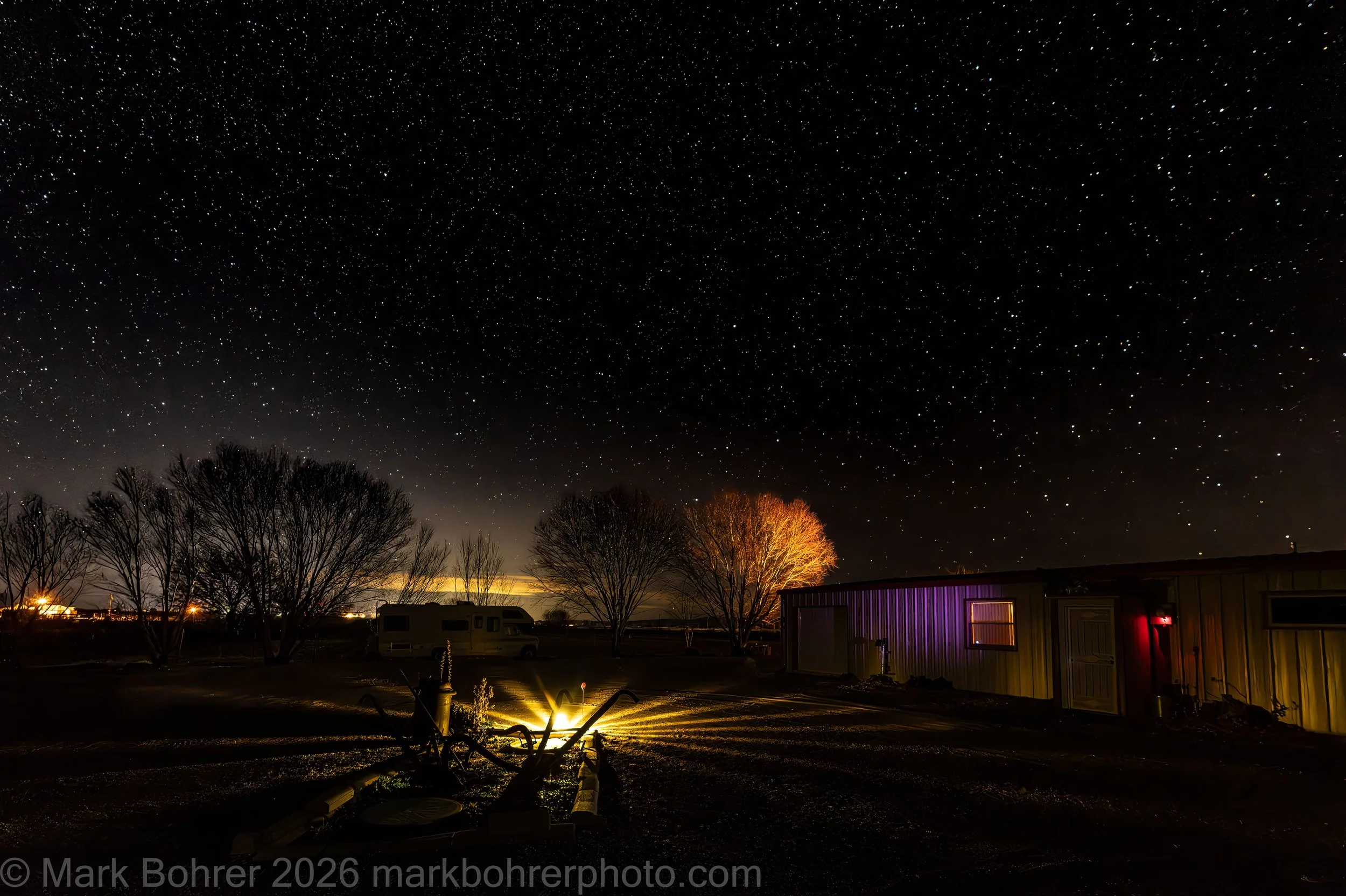 That night, I made use of clear skies at the Chupadero Mountain View RV Park for some fun light-painted shots with starry backgrounds. We discovered last year that the owner of Bosque Birdwatchers RV Park, our usual RV stop for Bosque Del Apache, had retired due to poor health. Chupadero Mountain View RV Park is maybe 1/4 mile further away from Bosque, so there wasn't much difference.